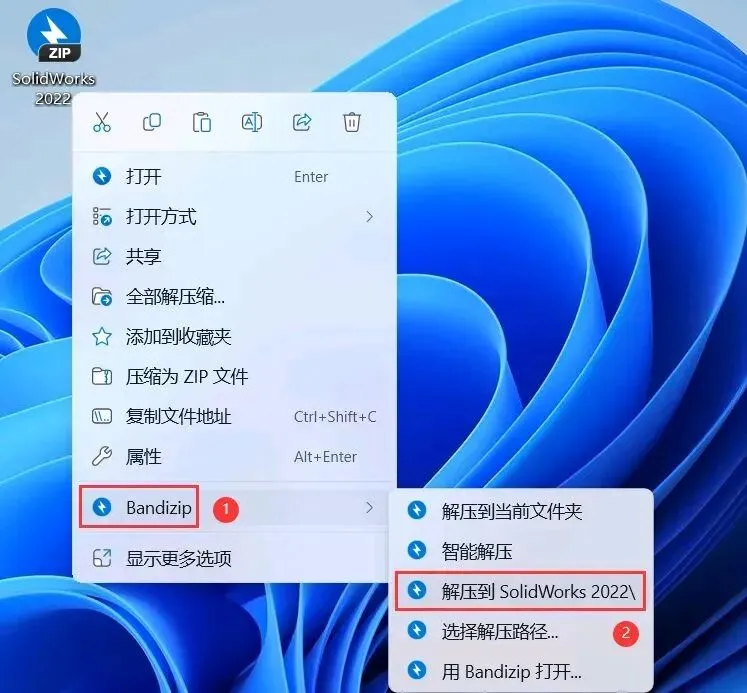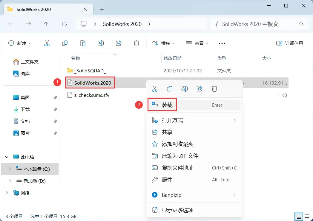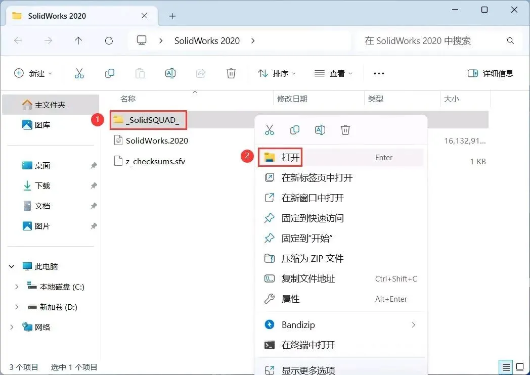 1.下载SolidWorks 2020软件安装包到电脑上,右键选择【解压到SolidWorks 2020(64bbit】