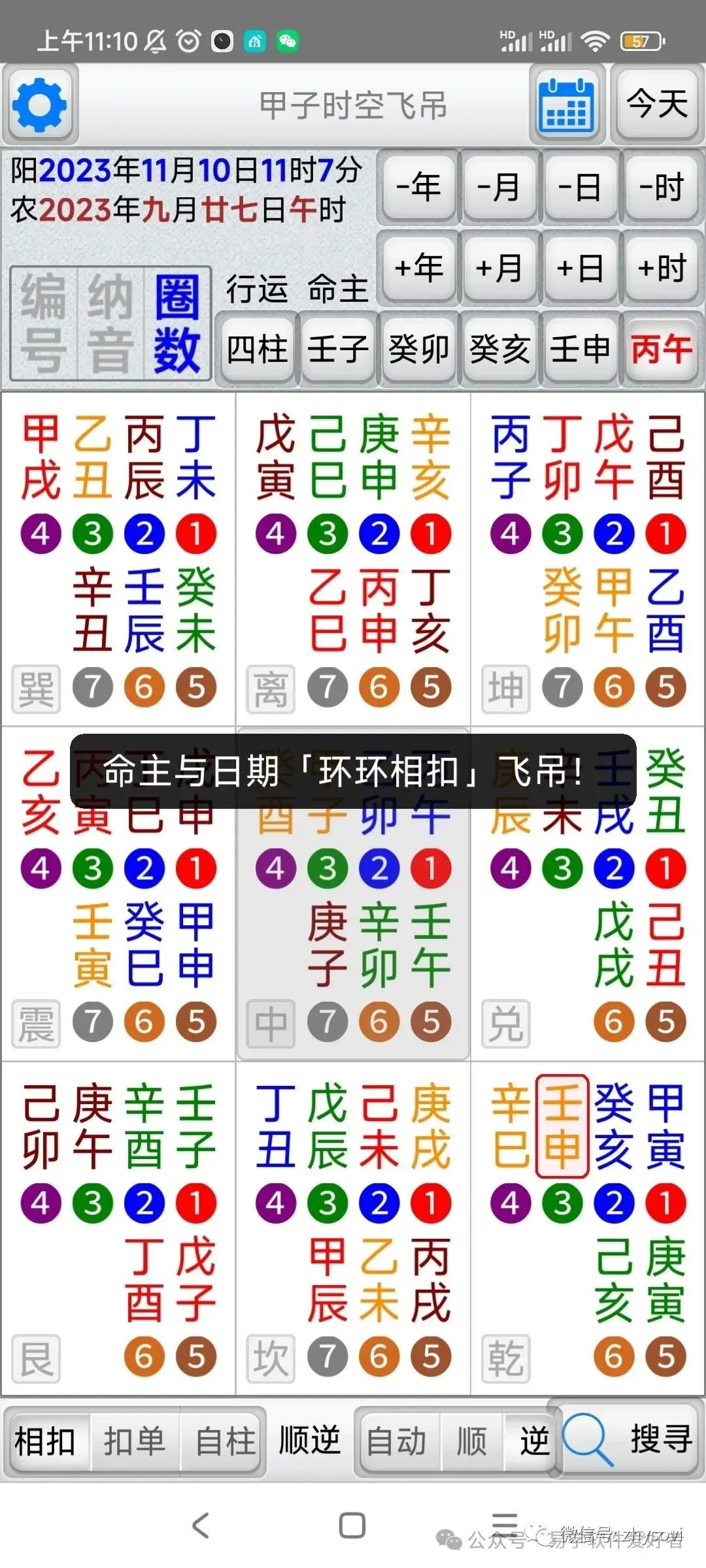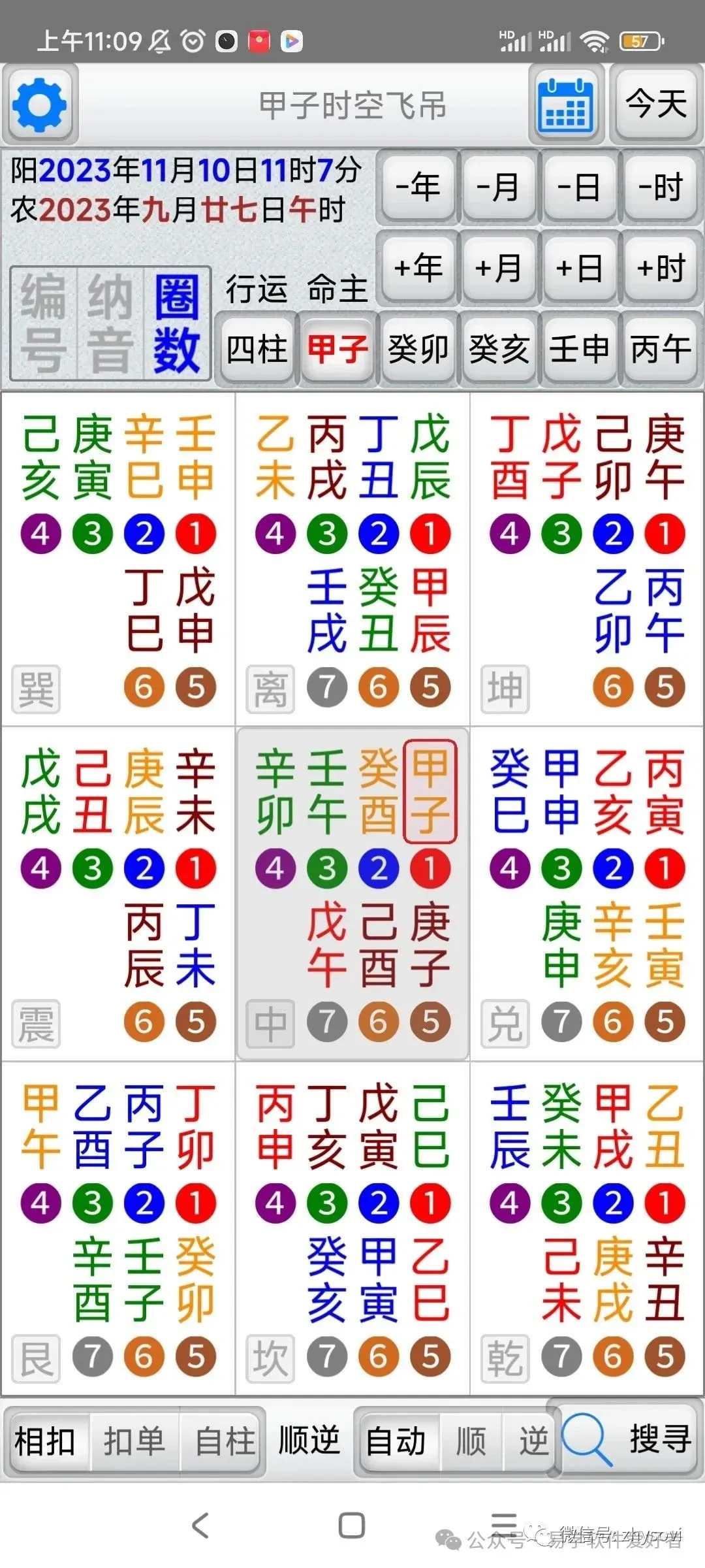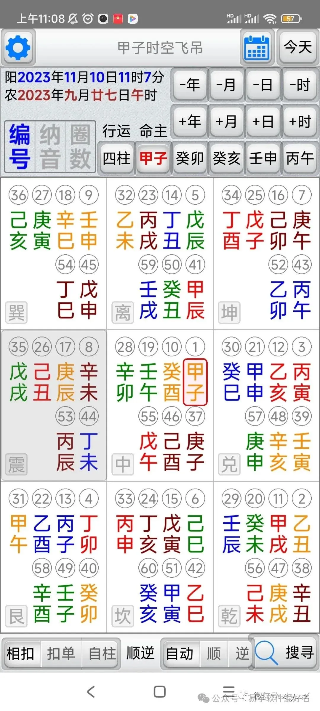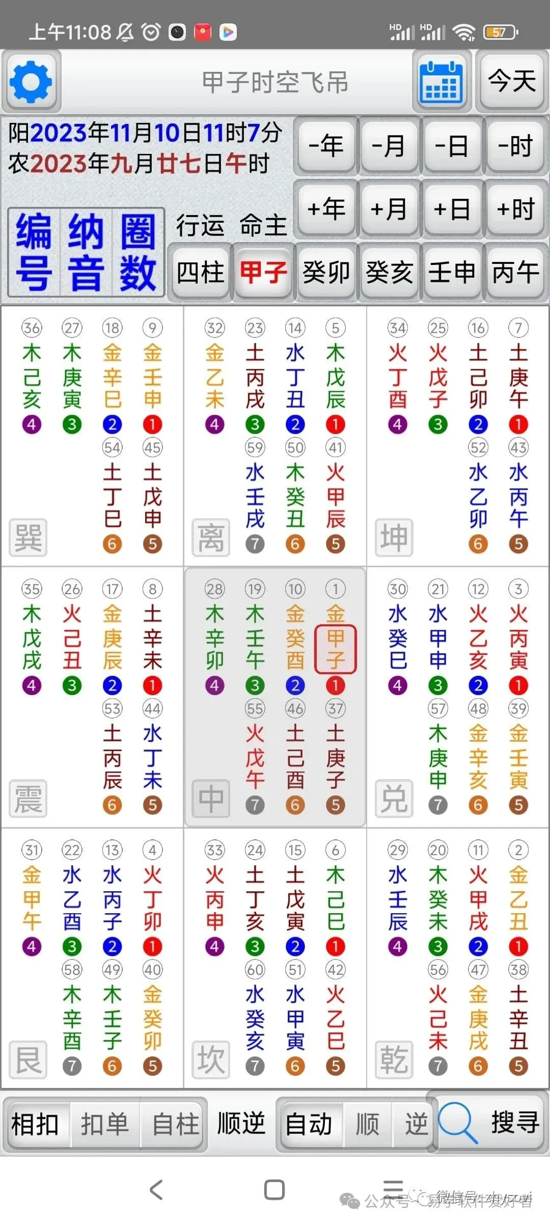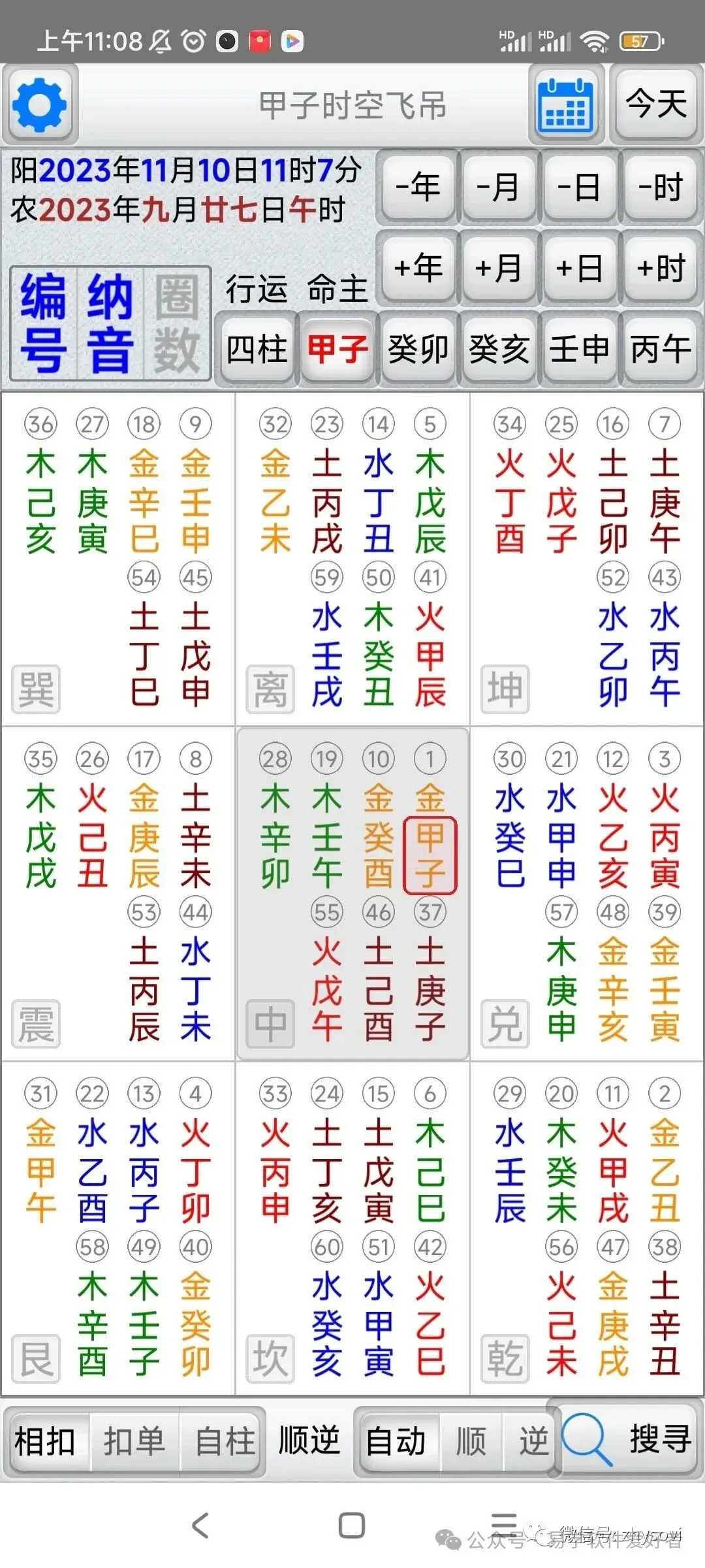 「甲子时空飞吊」是堪舆择日法的一种工具,它结合了天(时间)地(方位)人(命主)三种关系,找出吉的应用方位。