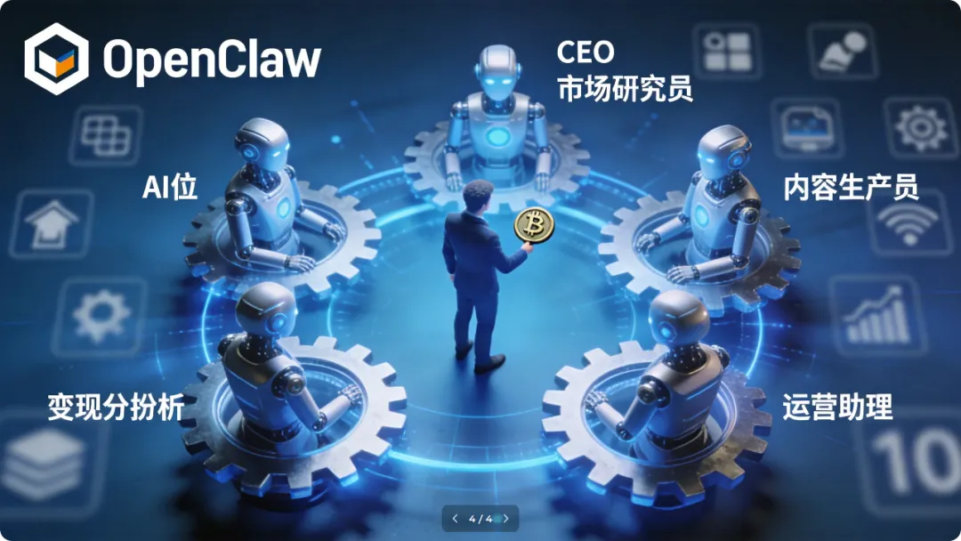 用OpenClaw搭一人公司的核心逻辑,就是设置5个各司其职的AI岗位,覆盖创业全链路: