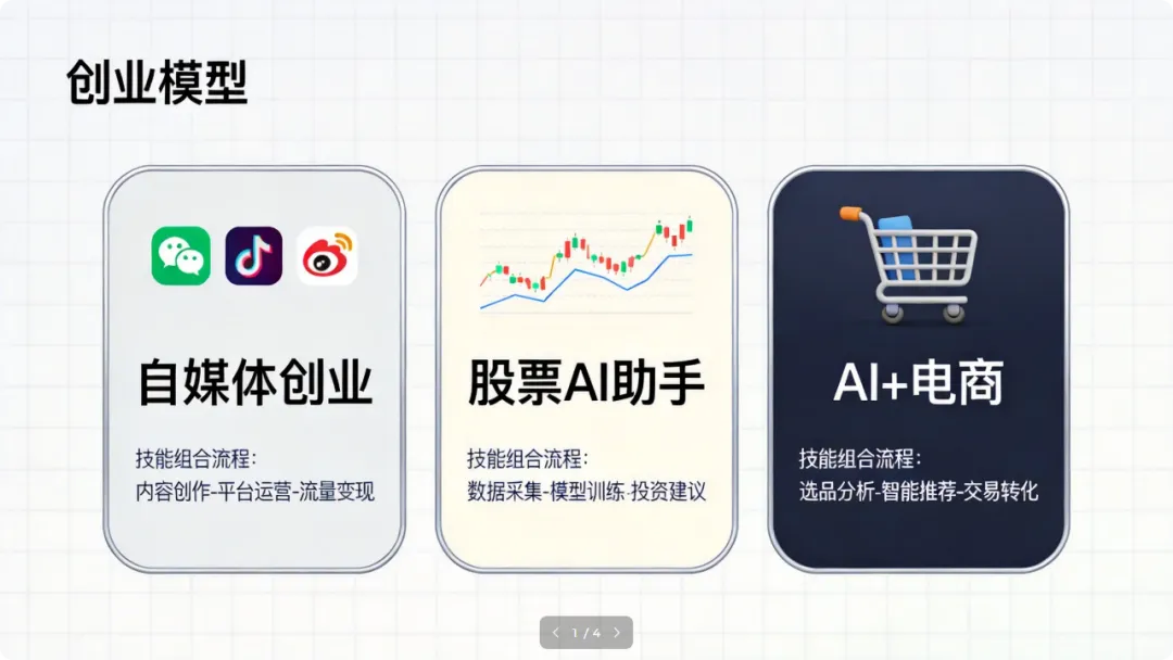✅ AI+电商:技能组合trend-research→copywriting→ads-manager→crm-manager,长期盈利空间大,适合有电商运营经验的人