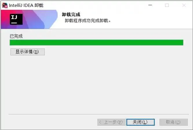 卸载完成后,点击 关闭 按钮。