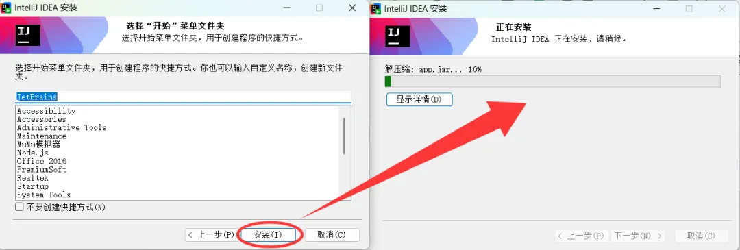 点击 安装 按钮,等待 IDEA 安装完成: