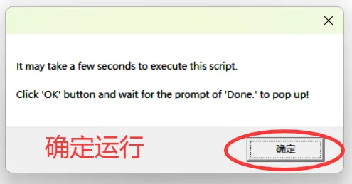 会提示安装补丁需要等待数秒。点击【确定】按钮后,过程大概 5- 30 秒,如看到弹框提示 Done 时,表示激活破解成功: