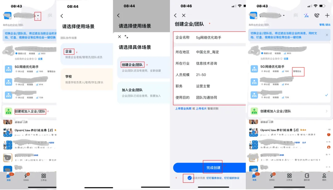 4、输入相关信息,勾选同意,点击“完成创建”