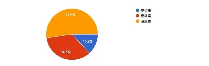 机型 | 无明显变化 | 感觉更耗电 | 感觉更省电 |