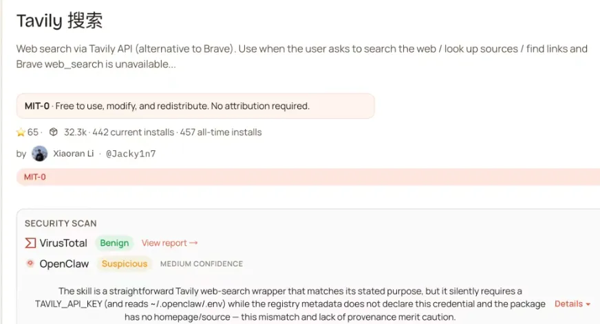 地址: https://clawhub.ai/Jacky1n7/openclaw-tavily-search
