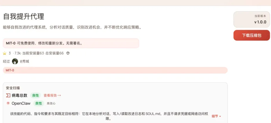 地址: https://clawhub.ai/xiucheng/xiucheng-self-improving-agent