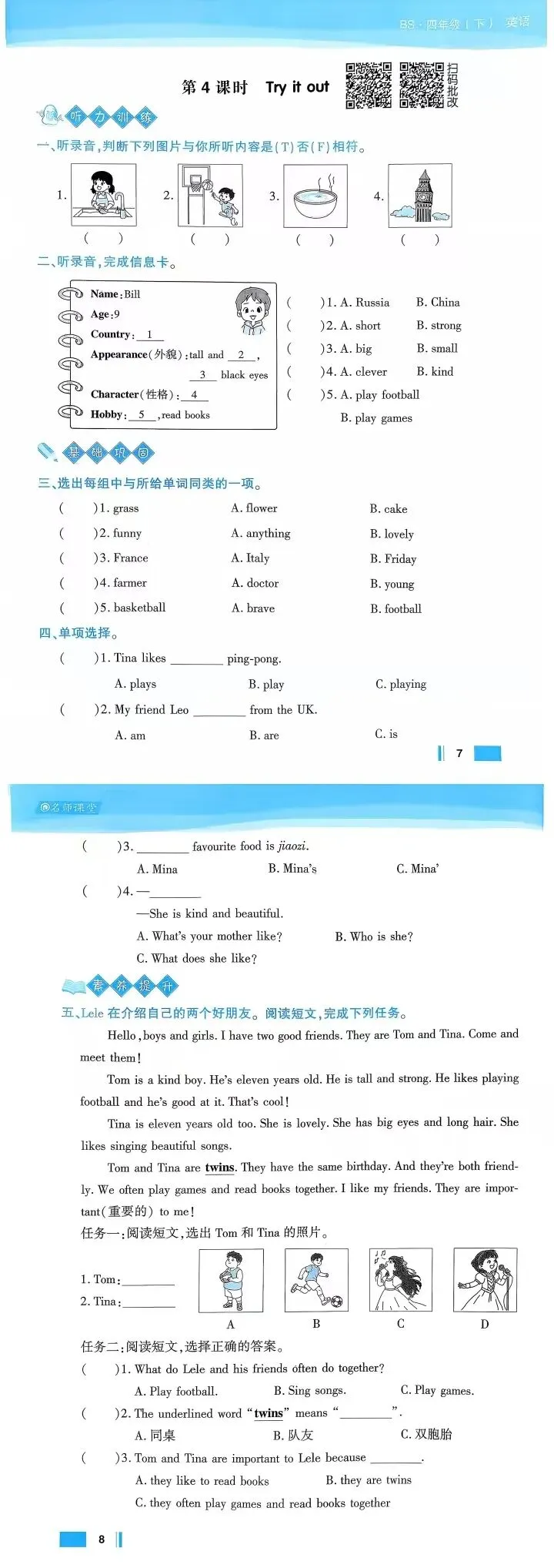 推文:北师大版小学英语四下