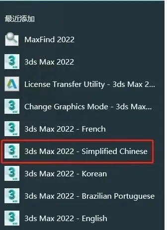 12.安装后有多种语言点击开始-所有程序-Autodesk-3ds Max 2022 - Simplified Chinese。