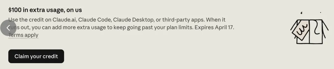 因为大瑜是100美刀的用户,所以就领取了额度100美元的额度。
