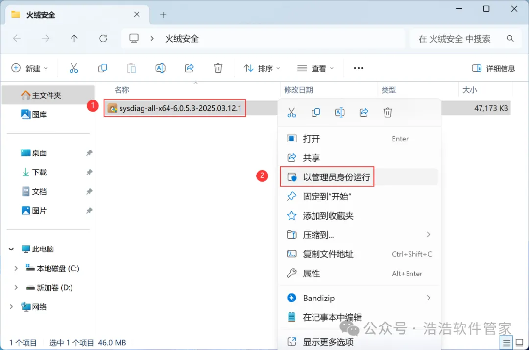 3、找到【火绒安全】应用程序,右键选择【以管理员身份运行】它
