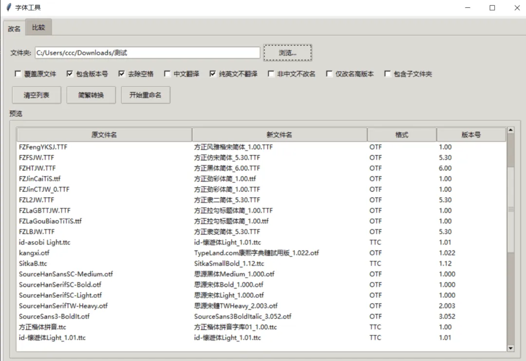 1.2,增加文件夹内存在多个版本不同、版本相同的字体改名处理,可选仅改名高版本,完善结果提示信息