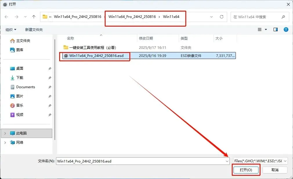 8.打开刚解压文件,找到Win11x64_Pro_24H2_250816选中,点击打开