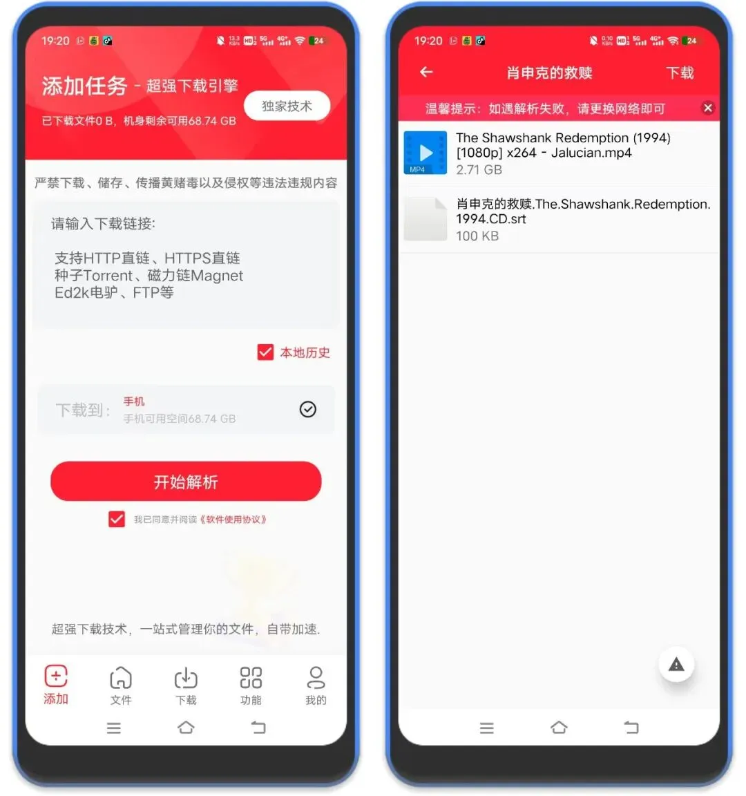 1、这是一个老牌的石兹力下载器,当然也解锁了全部功能,lsj必备神器,支持磁链、BT、HTTP、FTP等多种协议。粘贴链接,点击开始解析即可!