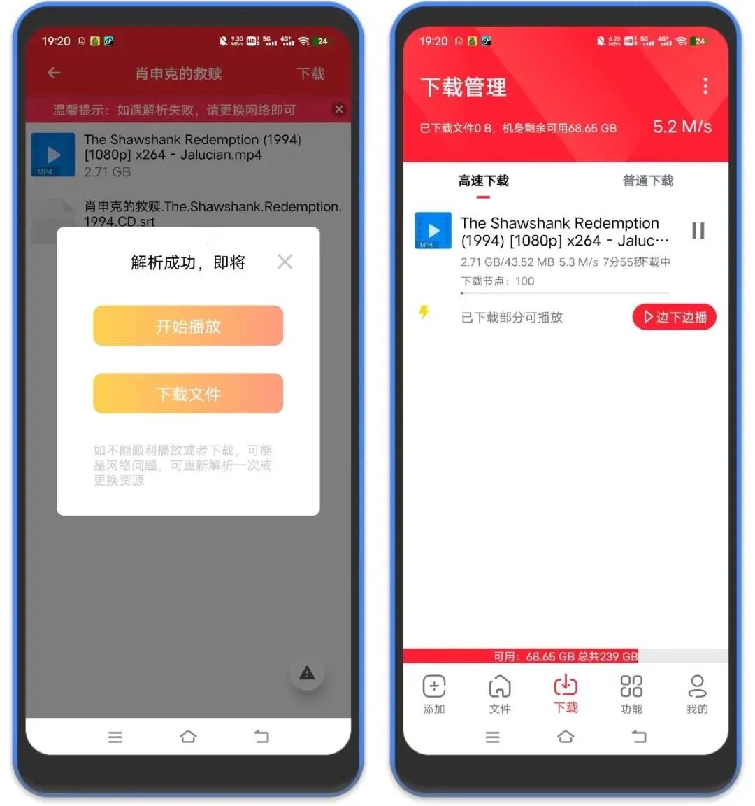 2、支持直接预览播放以及下载到本地!下载时候还可以边下边播,下载速度达到5MB/s,网速越快下载速度越快!播放画面就不演示,都懂的!
