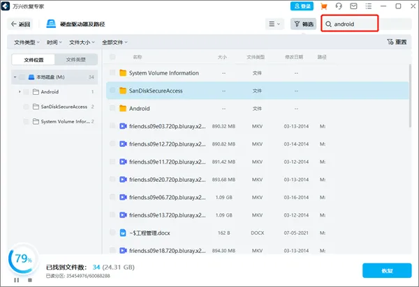 此外,您还可以直接在右上角的框中搜索关键字。然后万兴恢复专家将识别所有引用关键字的文件。