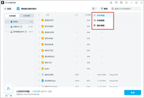 除此之外,万兴恢复专家软件操作起来也是非常的简单,只需要先扫描,在扫描结束之后,选择视图方式,不过小编这边建议用户使用文件视图方式,这样就可以直观地根据文件的格式来进行筛选的哦,有需要的朋友欢迎前来本站免费下载。