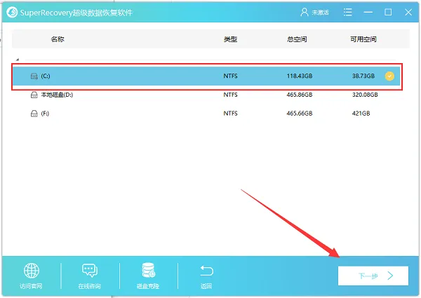 2、选择我们需要进行数据深度恢复的磁盘,进行扫描。