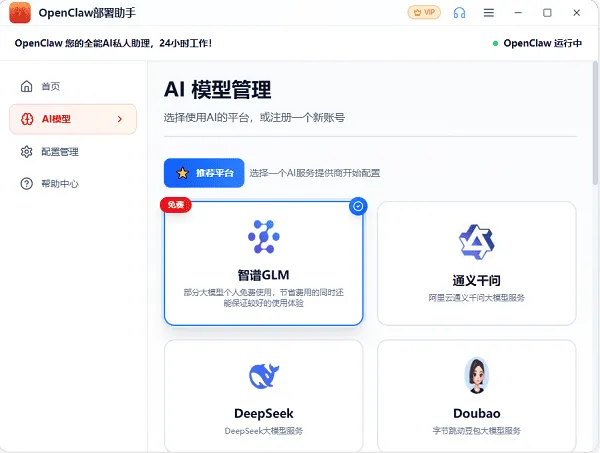 1、选择你要用的模型(比如智谱GLM、通义千问、DeepSeek等)。