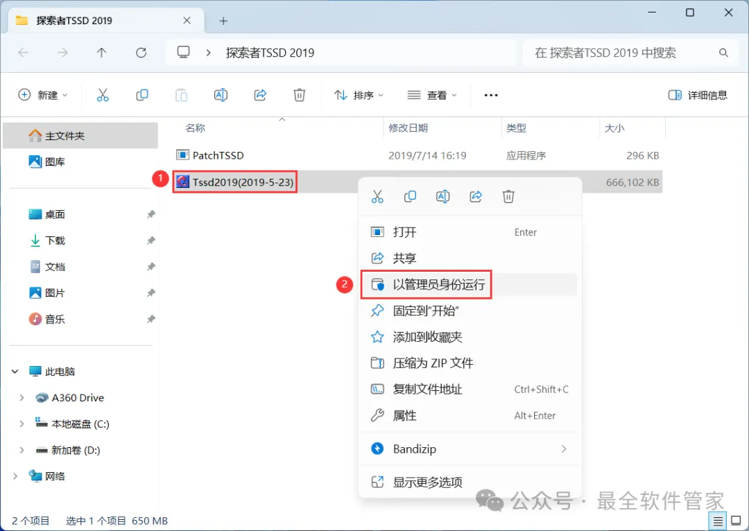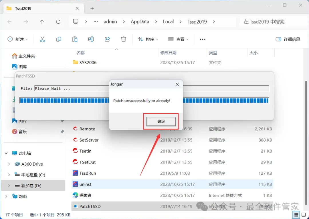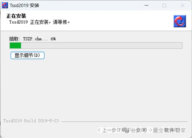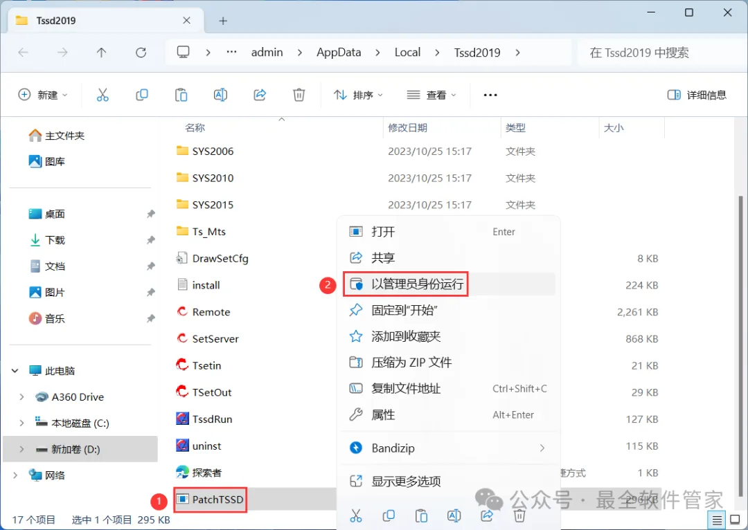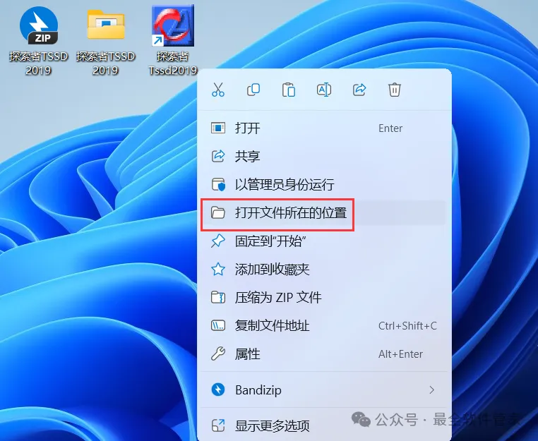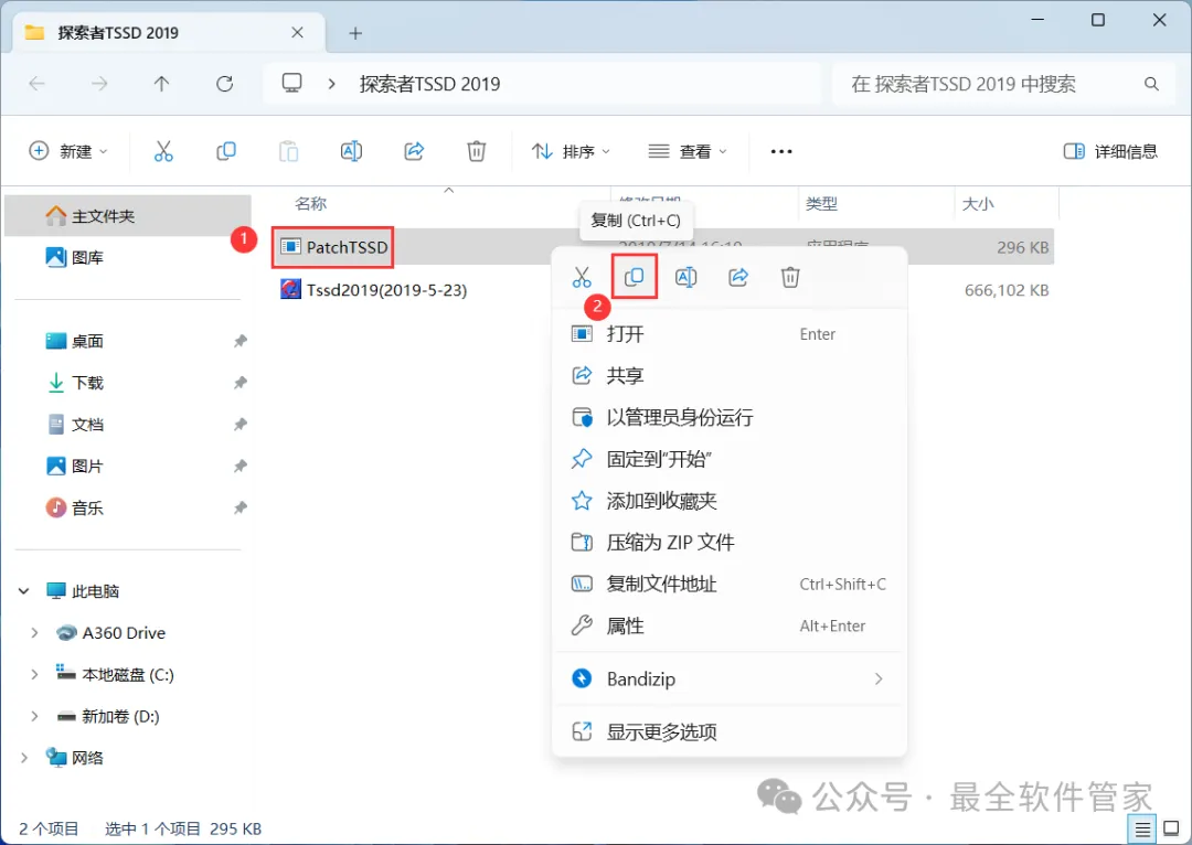 [不限速下载]:免费获取百度网盘不限速下载工具。公众号内回复:不限速[注意事项]:安装前请关闭网络、杀毒软件和防火墙,否则易安装失败。公众号内回复:1[解压软件]:小编用的解压软件是Bandizip,获取Bandizip软件安装包。公众号内回复:21、下载探索者TSSD 2019软件安装包到电脑上,右键选择【解压到探索者TSSD 2019\】3、找到【Tssd2019…】应用程序,右键选择【以管理员身份运行】它7、软件默认安装在C盘,可自定义更改软件安装位置,这里小编选择安装在D盘;点击【下一步】11、回到探索者TSSD 2019文件夹,找到【PatchTSSD】文件,再右键点击【复制按钮】12、回到桌面,右键桌面上的【探索者TSSD 2019软件图标】,点击【打开文件所在的位置】 14、找到粘贴的【PatchTSSD】文件,再右键选择【以管理员身份运行】它 17、回到桌面,右键桌面上的【探索者TSSD 2019软件图标】,点击【打开】20、以上就是探索者TSSD 2019软件安装的全过程,要是对你有帮助的话,请为小编点个赞!免责声明:软件资源均来源于网络,仅供用户交流学习与研究使用,版权归属原版权方所有,版权争议与本公众号无关,用户本人下载后不能用作商业或非法用途,否则后果均由用户承担责任;如果您访问和下载此文件,表示您同意只将此软件用于参考、学习而非其他用途,否则一切后果请您自行承担,请于下载后24小时内删除,不允许用于商业用途,否则法律问题自行承担。如果您喜欢该软件,请支持正版软件,购买注册,得到更好的正版服务。