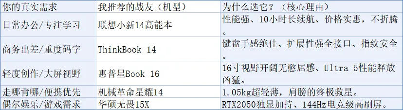 在这个诉求下,咱们直接把目光锁定在**“轻薄+长续航+强CPU”**的阵营。