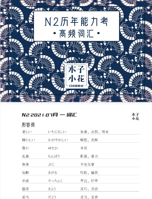 文章发出当天无门槛分享,在公众号后台回复 “N2高频词” 获取完整高清电子版!