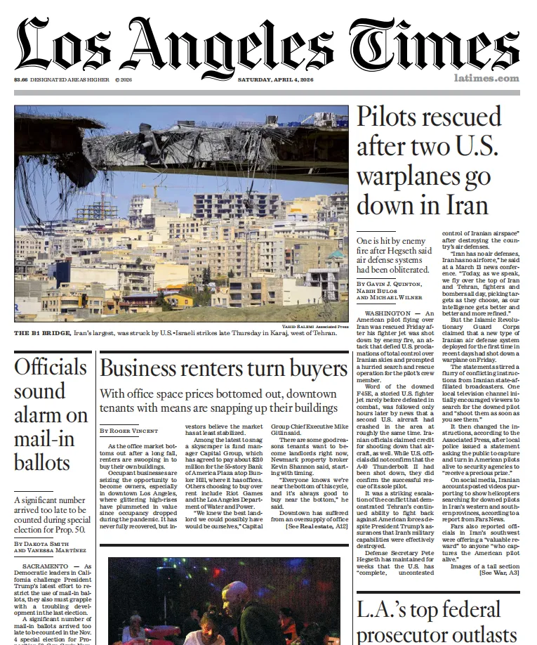 Los Angeles Times - April 04, 2026.pdf 链接:https://pan.baidu.com/s/1cVkKNRMIlBfWRHNEP4g3Qw?pwd=8888 提取码:8888 |