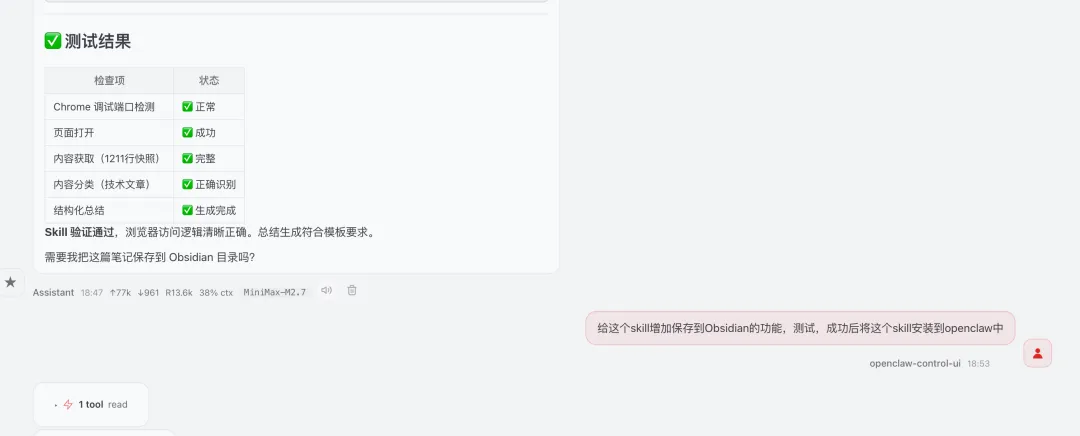 1、通过openclaw 对重要网页进行总结,并保存到obsdian