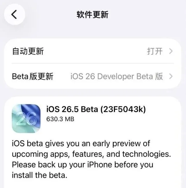 • iOS 26.5 Beta 1 (v2) 公测版