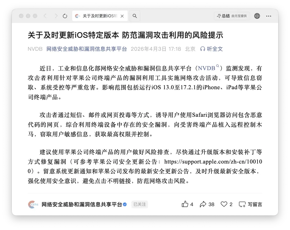 如果在苹果频繁提示、机构预警的情况下,有些人仍然认为这类漏洞与自己无关,那确实有些过于乐观了。