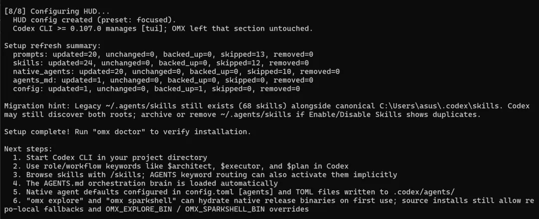 协作逻辑:OMX 通过 tmux 会话协调多个 Agent,明确模块分工和依赖关系,避免重复工作。