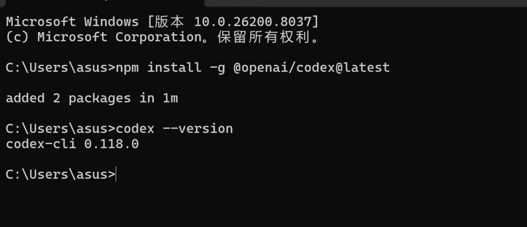 2. 全局安装 Codex CLI