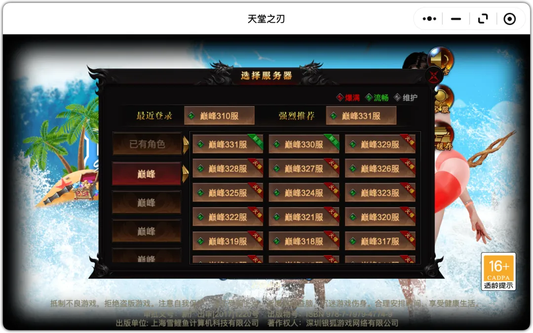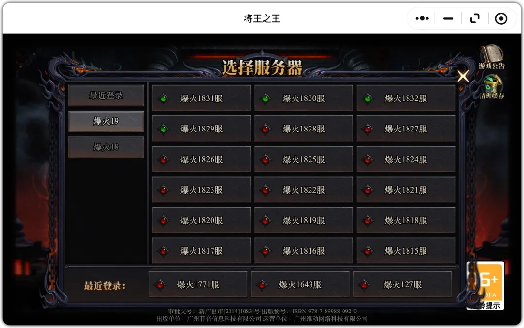 (昨日纵横596服,今日纵横612服,今日新开16服!)