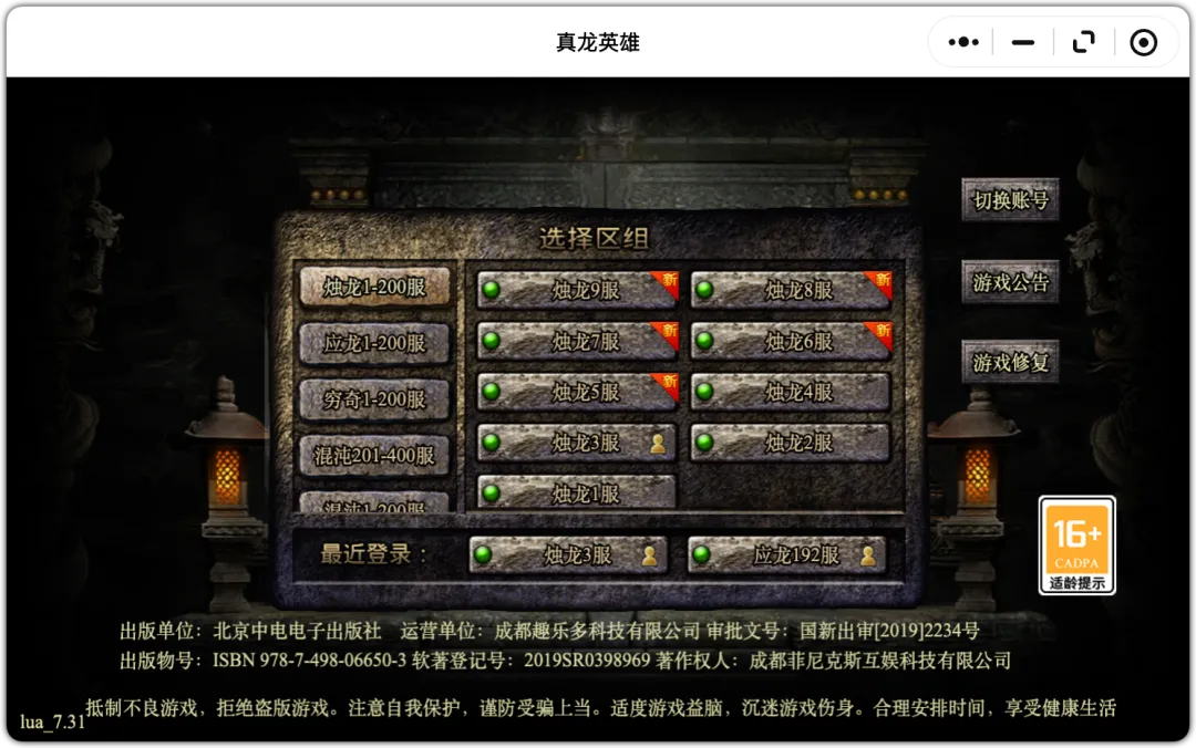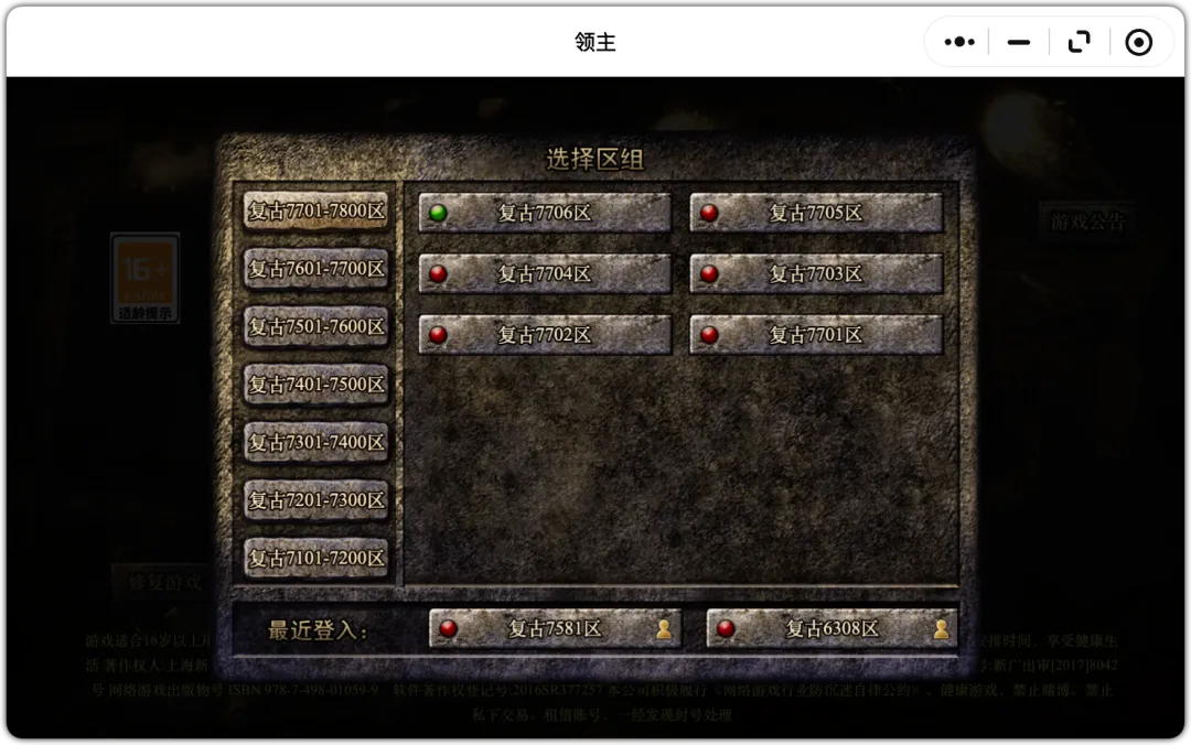 (昨日复古7694区,今日7706区,新开12服)