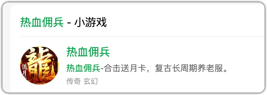 9、《热血佣兵》 小五碎碎念:养老传奇、合击送月卡、复古长周期、生态大服、三职业打金、千人同屏、物价稳定、自由交易、可搬、纯月卡畅玩!