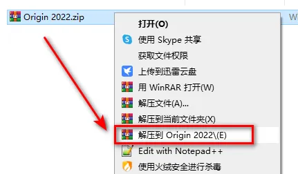 1.鼠标右键解压到“Origin 2022”