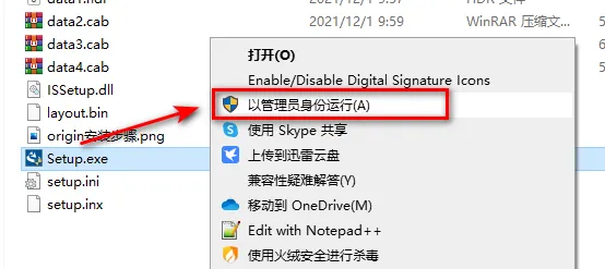 3.选中Setup,鼠标右键选择“以管理员身份运行注册机”