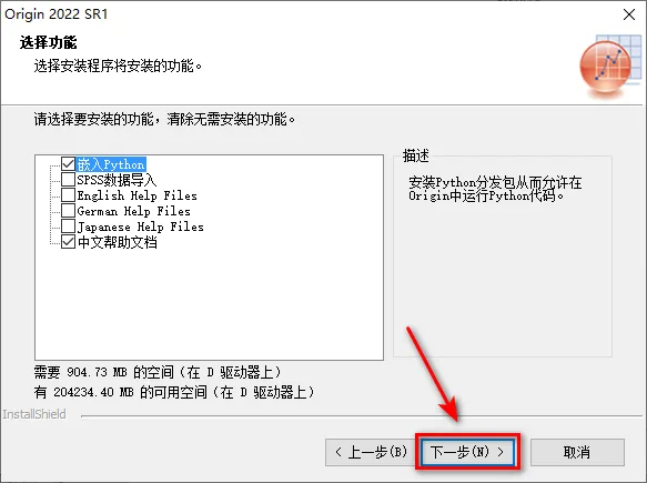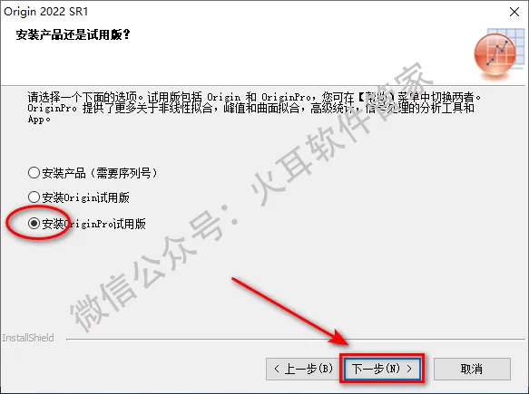 6.选择安装OriginPro试用版,点击“下一步”