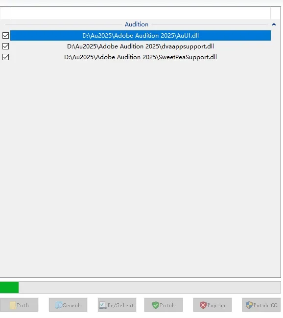 13. 开始激活:点击“Path”,在弹出的对话框中找到软件安装目录(步骤四和步骤六中所更改的位置)下的“Adobe Audition 2025”文件夹并打开。