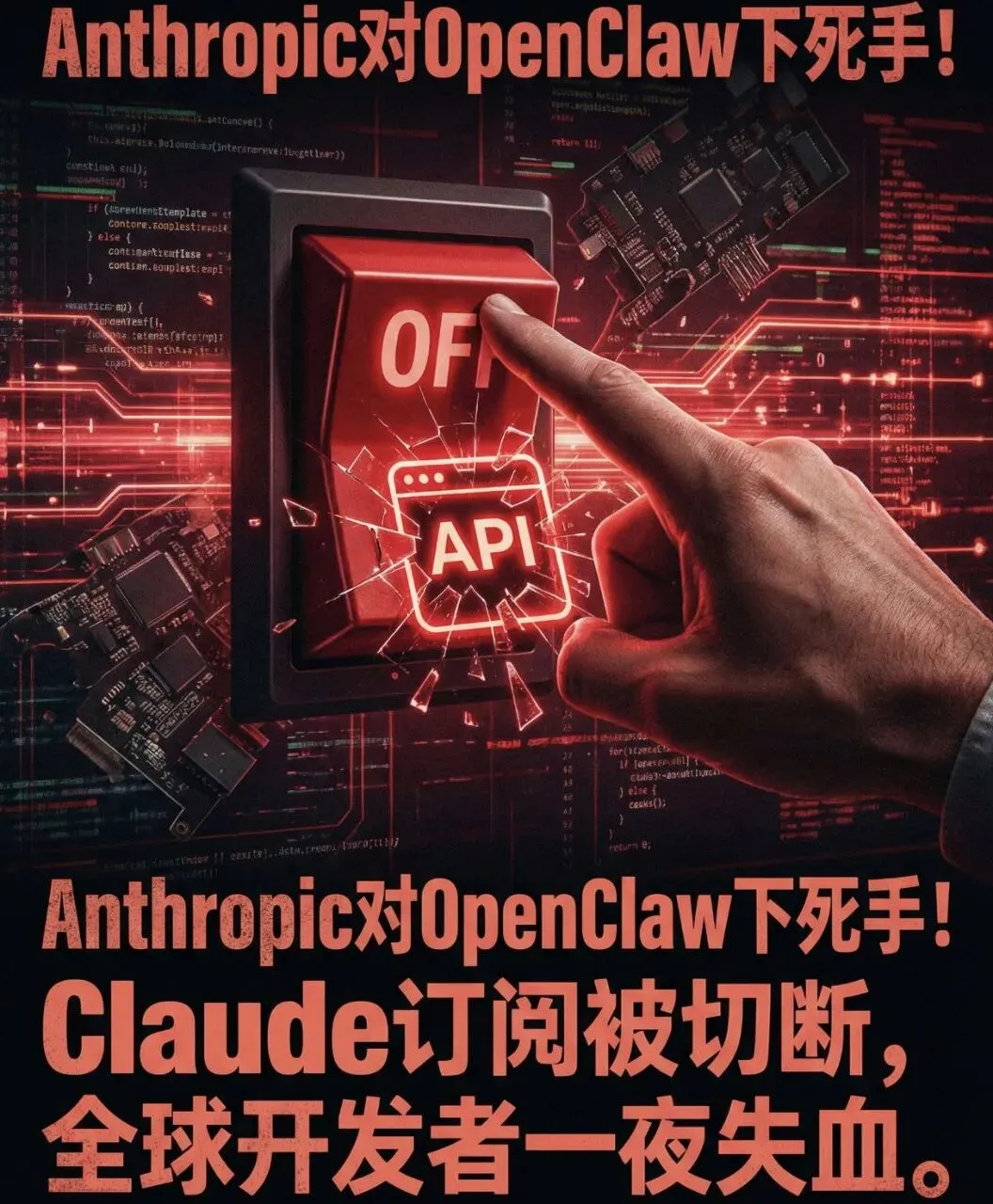 今天AI圈炸了锅,Anthropic突然出手,直接叫停了Claude订阅服务对OpenClaw等第三方工具的额度支持。