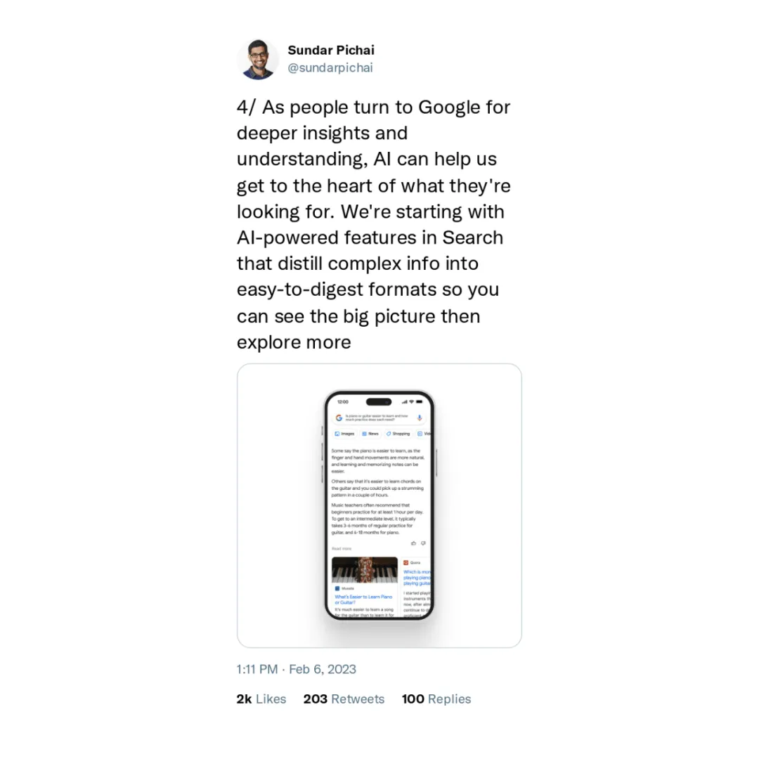 Gary Marcus 与 LeCun 的理解略有不同:「从历史上看,科技的每一次进步确实只是取代了工作岗位,但话说回来,我在过去的半个世纪里都活着,并不意味着我是不朽的。真正的 AGI 会取代大部分工作,不是吗?」巨头之争,你看好谁?ChatGPT 引发的 AI 圈地震,打破了科技巨头之间的状态平衡。微软的这些动作让谷歌迅速陷入了困境。皮查伊发布了「红色代码」,谷歌在前段时间推出了 Bard,作为 ChatGPT 的竞争对手,并在人工智能的战斗中做出了回应。可能很多人都认为,微软和 OpenAI 的「强强联合」将在人工智能大战中击败谷歌。但一位名叫「Tibo」的科技初创公司 CEO 认为,谷歌绝对会击垮这一组合,OpenAI 并不会改变「权力游戏」的等级制度。