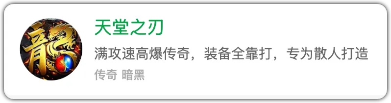 👆传奇新服入口👆8、《天堂之刃》小五碎碎念:满攻速高爆传奇、5倍攻速、全屏吸道具、开局VIP5、开局合击技能。