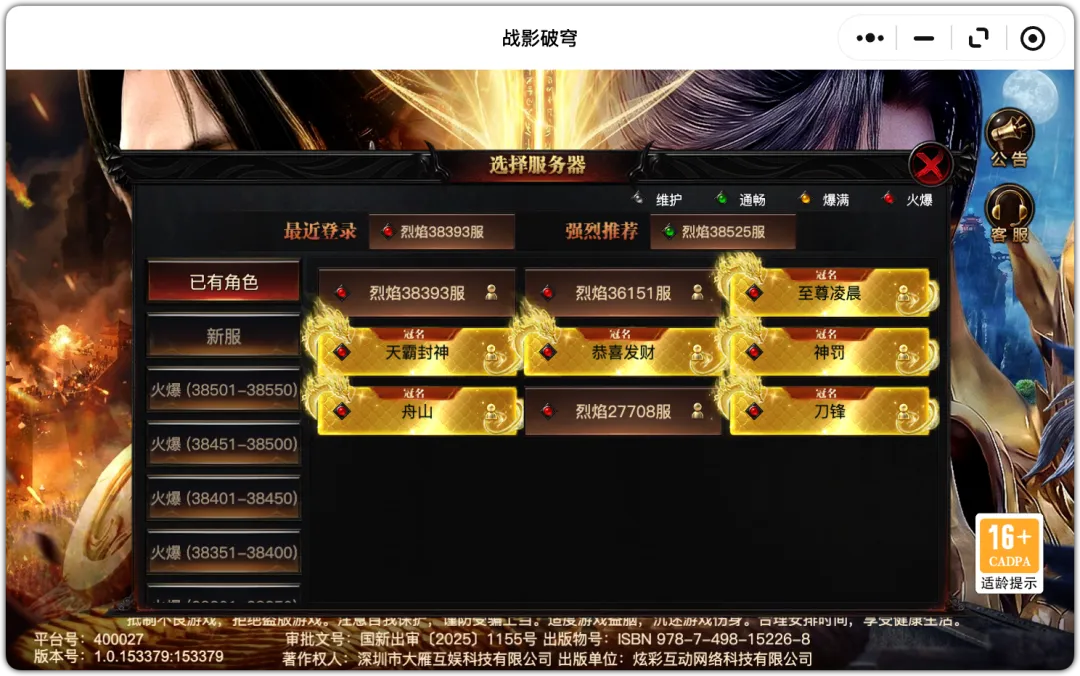 (昨日38393服,今日38525服,今日新开132服🔥)