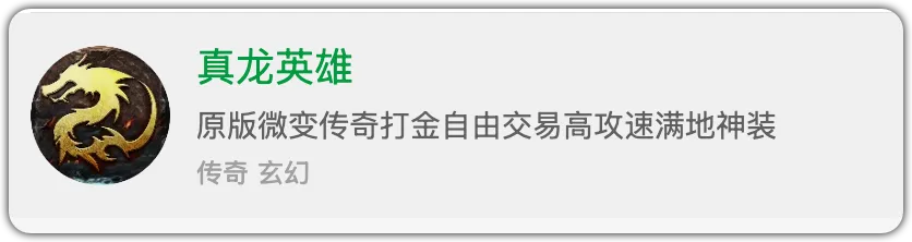 4、《传奇之业》 小五碎碎念:超清建模传奇、三职业、自动拾取,自动回收。高攻速,送称号,送真充,打20个怪抽一个盲盒。联名《诛仙》
