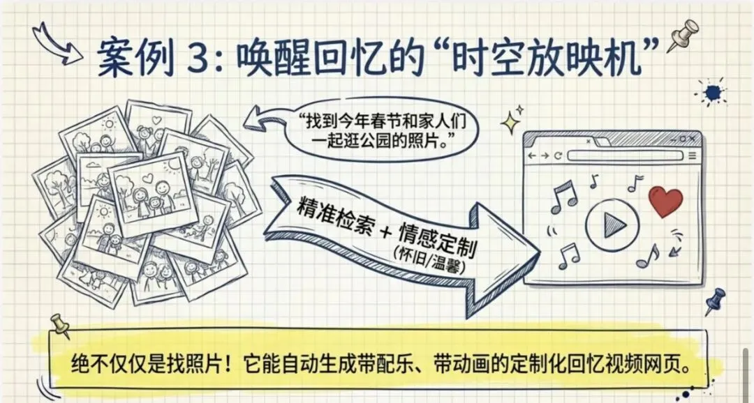 我说帮我找到什么什么样的图片啊,比如说"找到今年春节和家人们一起在公园逛年会的这个照片",它就帮我找出来。