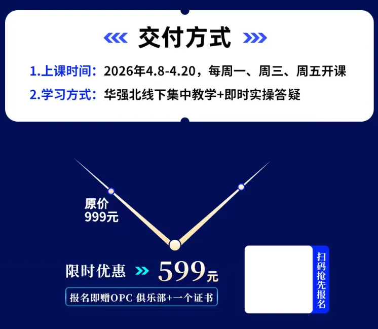 限时特惠599元,AIP朋友享受5折报名,OPC孵化基地朋友仅需押金99元即可免费参加!