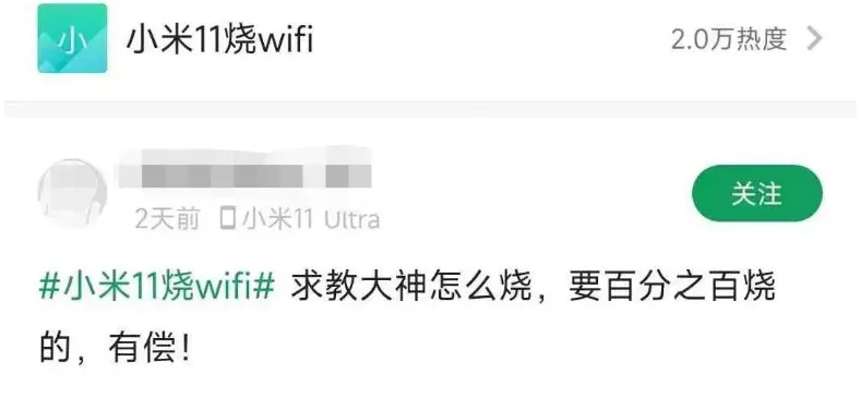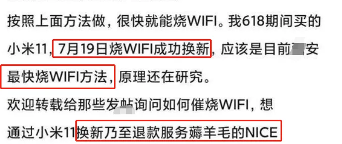 某安上就有帖子教别人低价买二手的小米11,然后出烧WiFi教程,让别人去换新小米11薅羊毛的。