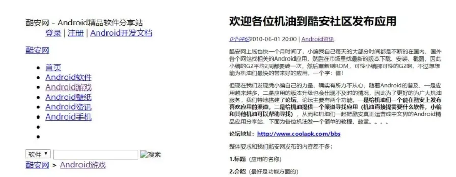 酷安也是抓住了这波空窗期,在2010 年的 4 月就推出了这个安卓应用资源站,因为域名是Coolapk.com,酷安也因此得名。