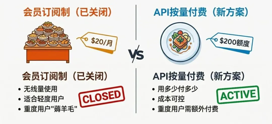 会员订阅制 vs API按量付费,本质上是两种商业模式。