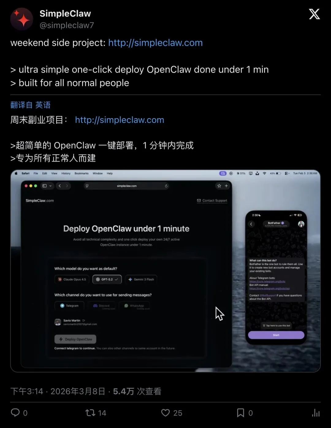 如果这句成立,那对 OpenClaw 这种“常驻在线、能干活”的框架来说,意义不亚于把一台服务器塞进了一个 App 图标里。